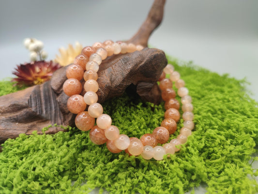 Sunstone & Peach Moonstone Bead Bracelets - Enhance Confidence and Courage - Fire Energy