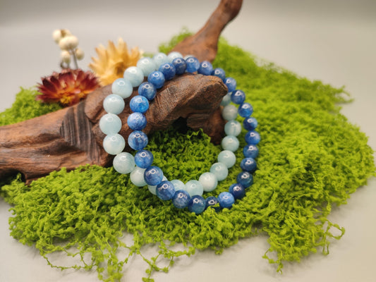 Aquamarine & Kyanite Bead Bracelets - Enhance Communication Skills - Water Energy