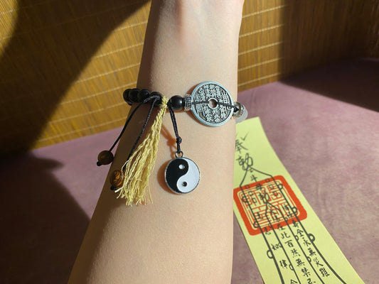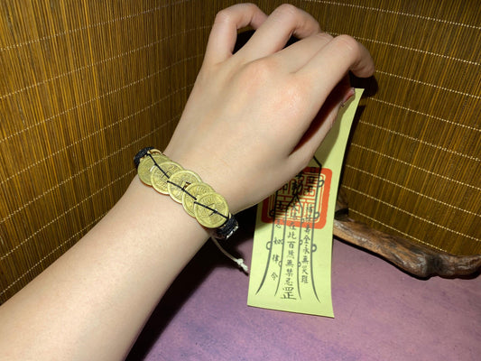 Tai Chi Mountain Ghost Coin Bracelet - with Handwritten Tai Sui Talisman by Taoist Priest