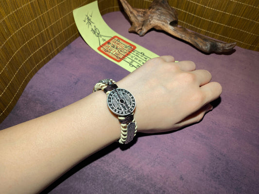 Mountain Ghost Coin Tai Sui Leather Bracelet - with Handwritten Tai Sui Talisman by Taoist Priestai Sui Talisman by Taoist Priest