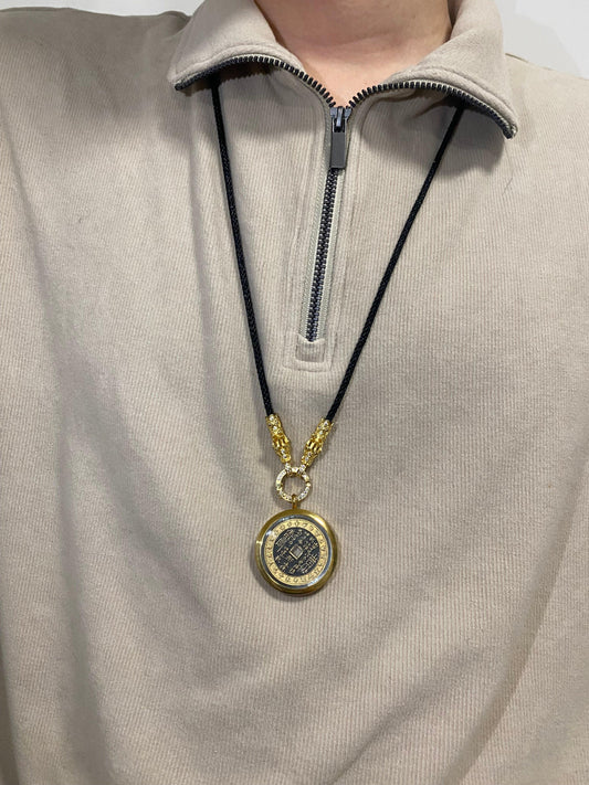 Mountain Ghost Coin Tai Sui Double Dragon Necklace - with Handwritten Tai Sui Talisman by Taoist Priest
